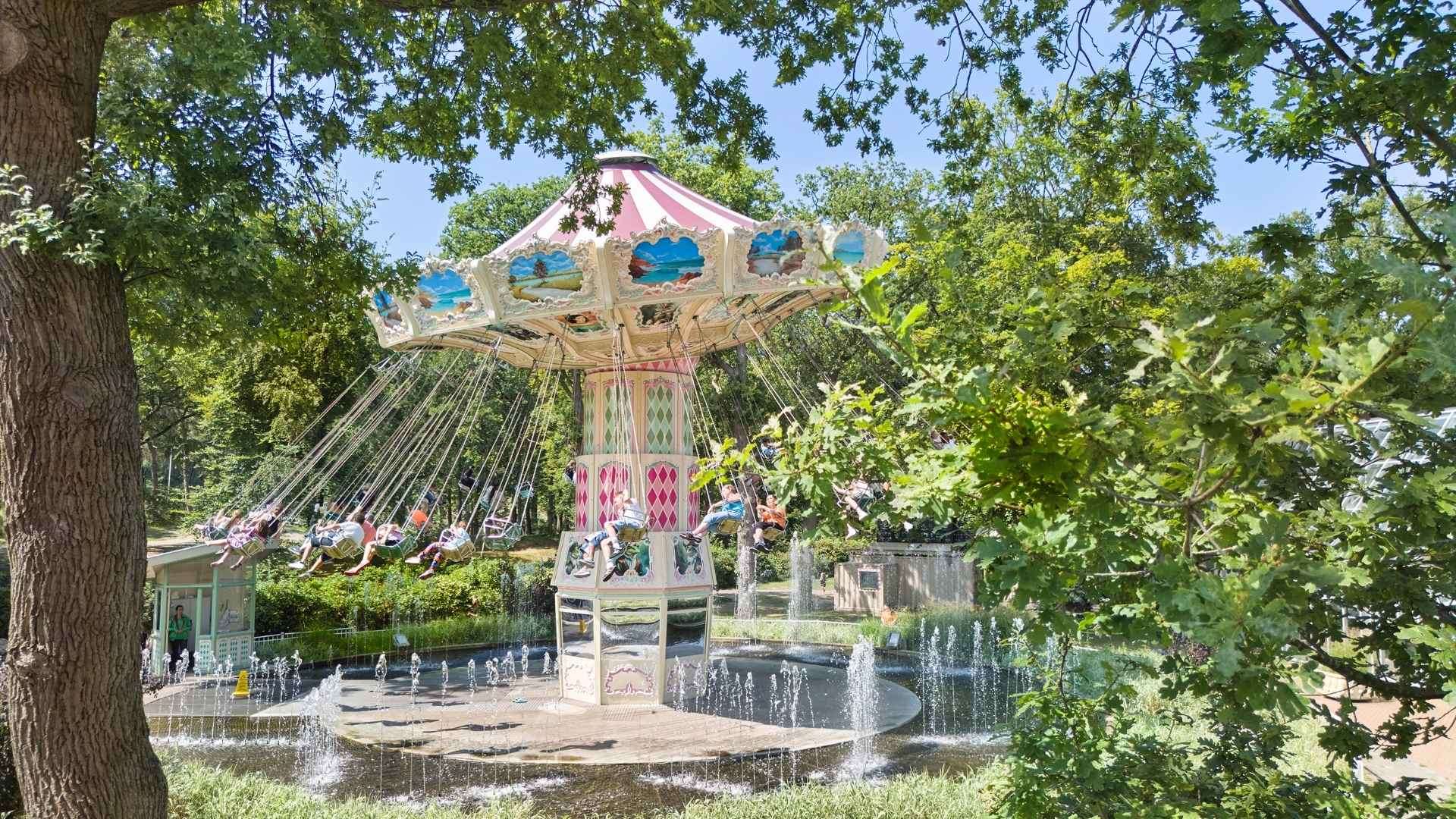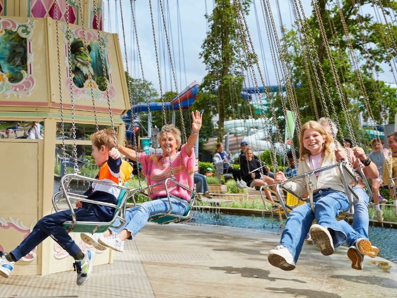 In deze zweefmolen draai je rondjes op 10 meter hoogte terwijl onder je voeten waterfonteinen omhoog spuiten. Doe je ogen dicht en voel dat je vliegt, maar vergeet niet om de fonteinen te ontwijken. Houd jij je voeten droog?