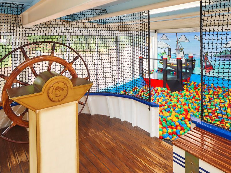 Op Duinrell zijn we dol op zwemmen. En dat kun je niet alleen in het Tikibad doen! De Ballenzee is een goed alternatief voor wie niet nat wil worden. Bommetjes maken, ronddrijven, kopje onder gaan … in de vrolijk gekleurde Ballenzee zwem je rond in twee enorme bakken met duizenden ballen. Je springt de zee in vanaf een heus schip. Neem plaats aan het roer en speel eventjes voor kapitein. Varen jullie mee?