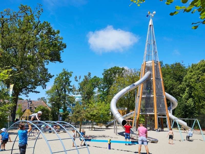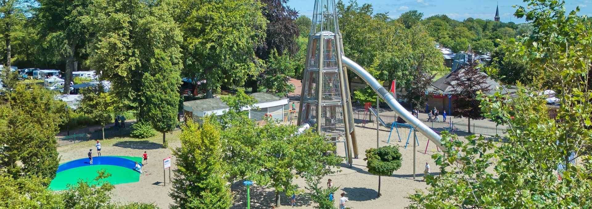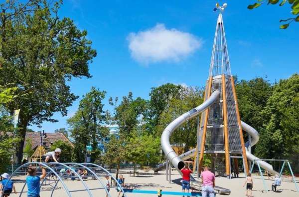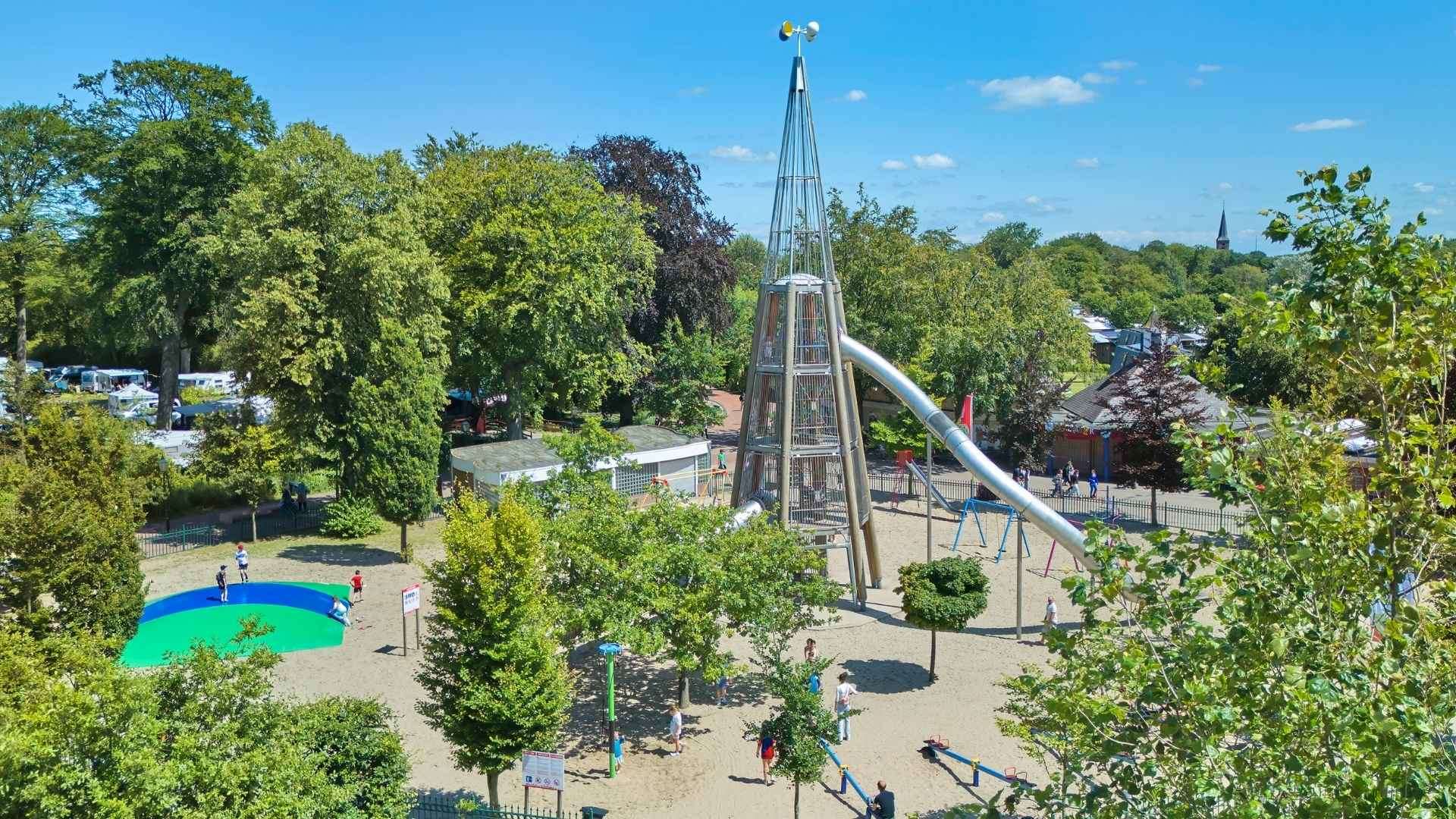 In de nostalgische speeltuin vind je naast alle speeltoestellen ook de superhoge Glijbaantoren. De glijbaan heeft drie glijbanen; de ene hoger dan de andere. Klim veilig me de trap naar boven en kies zelf vanaf welke glijbaan jij naar beneden gaat!