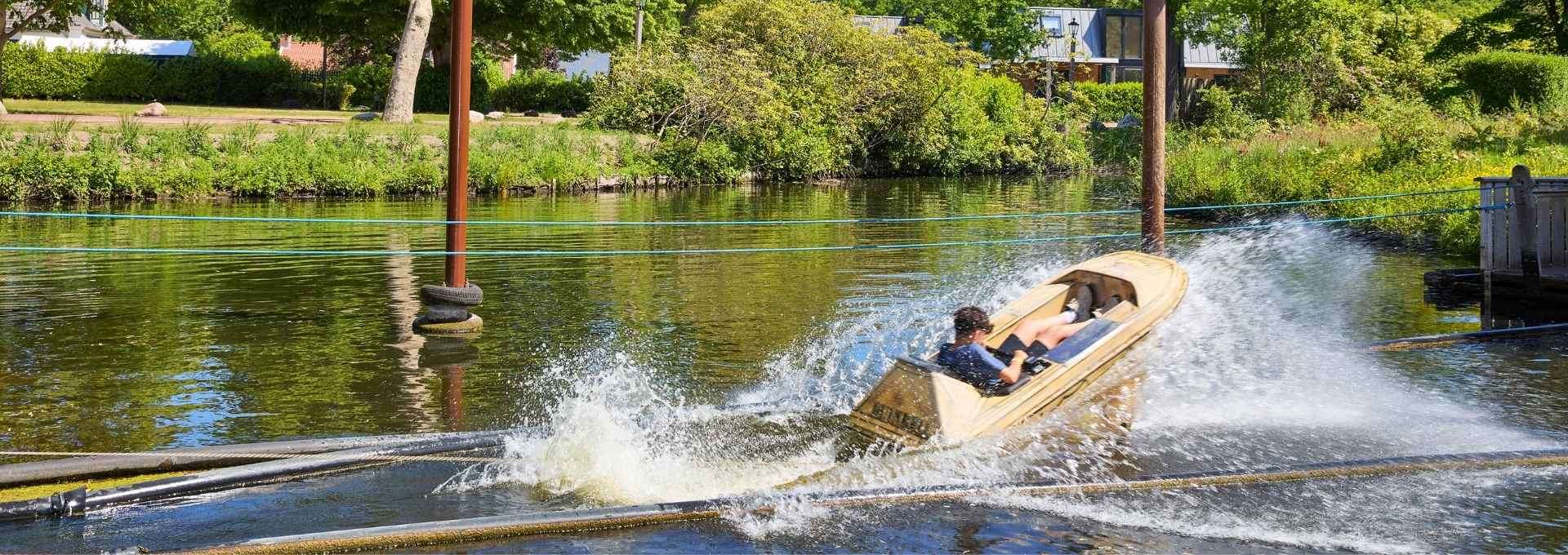 In de Katapults spring je in het water zoals Rick de Kikker! In deze attractie neem je plaats in een bootje en word je achteruit omhoog getrokken. Houd je goed vast! Je glijdt naar beneden van de schans en maakt een flinke plons. Het bootje brengt je vanzelf terug op het droge.