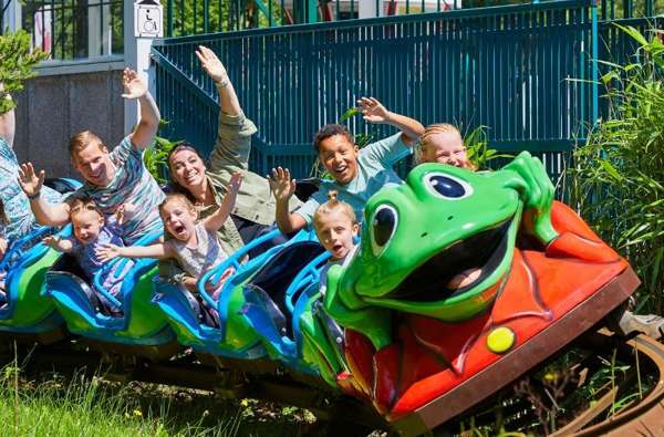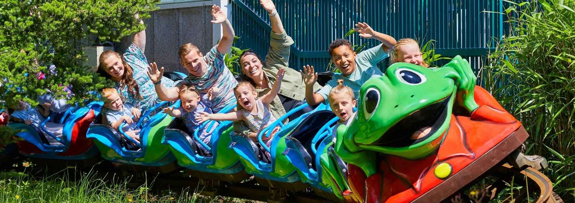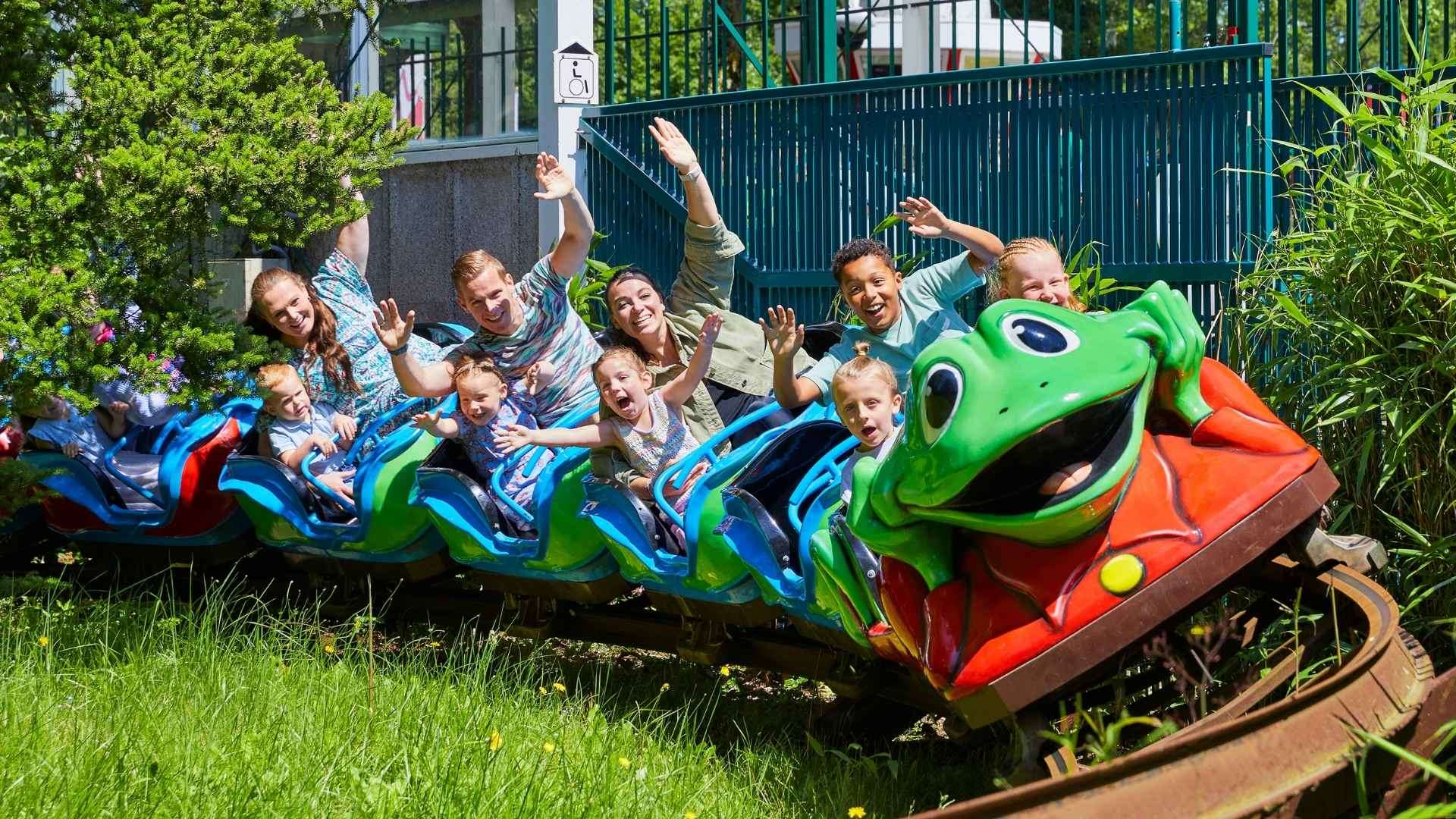 De vereiste minimale lengte voor de Kikkerachtbaan is 120 cm. Onder de 120 cm mag je onder begeleiding van een volwassene in de Kikkerachtbaan.