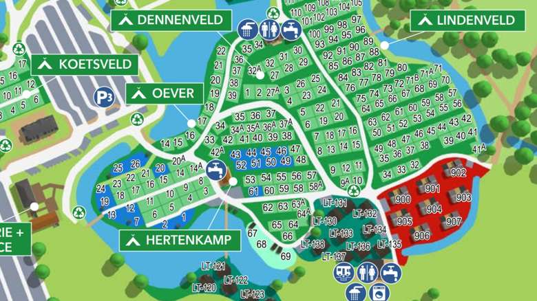Bekijk de plattegrond voor de afmetingen per campingplek. Kies tijdens het boeken een voorkeurslocatie tegen betaling door op de gewenste kampeerplaats te klikken. Is je kampeermiddel langer dan 8 meter? Mail of bel voor de mogelijkheden.