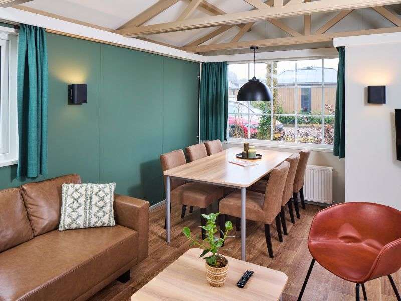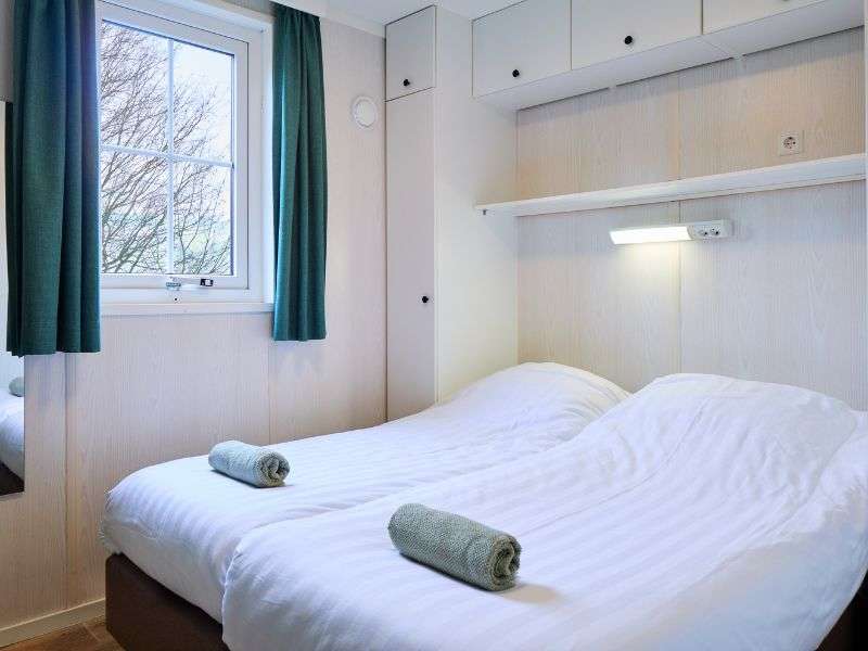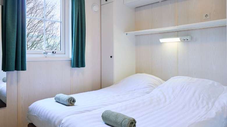 De afmetingen van een zespersoons Comfort: 11m x 3,5m en ligt op max. 5 minuten wandelen van de attracties.