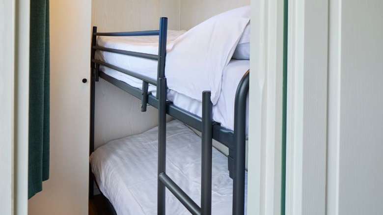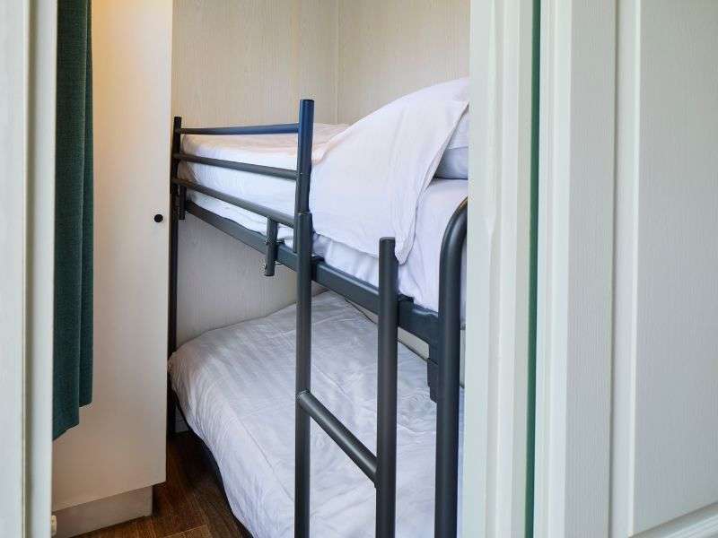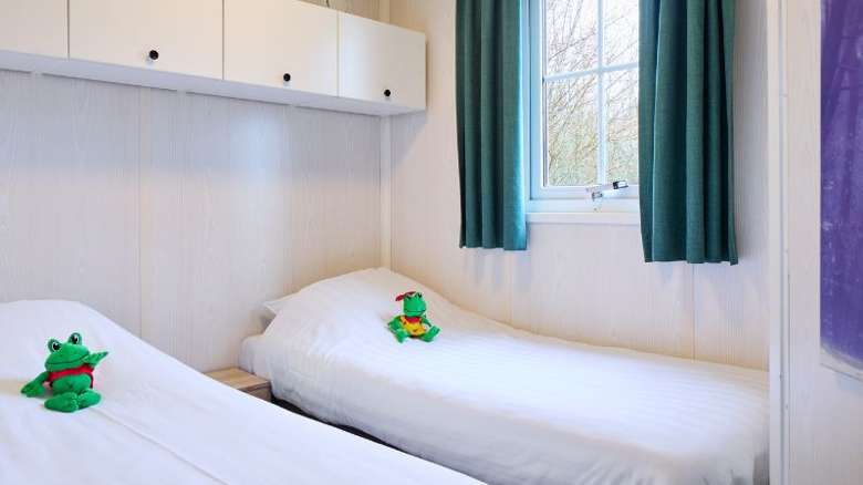 De Duingalow biedt plaats aan zes personen en heeft 3 compacte slaapkamers. In de drie aparte slaapkamers vind je in totaal zes slaapplekken: een tweepersoonsbed in de master bedroom, twee éénpersoons bedden en een kamer met stapelbed voor kinderen. Een eventueel kinderbedje kan in de woonkamer worden bijgeplaatst.