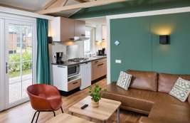 De keuken is compleet uitgerust om goed te kunnen koken: er is een vierpits gasfornuis en een combi-magnetron. Ook is er een vaatwasser en koffiezetapparaat aanwezig. In de badkamer bevindt zich een toilet.