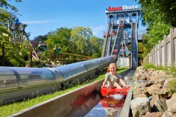 In deze zweefmolen draai je rondjes op 10 meter hoogte terwijl onder je voeten waterfonteinen omhoog spuiten. Doe je ogen dicht en voel dat je vliegt, maar vergeet niet om de fonteinen te ontwijken. Houd jij je voeten droog?