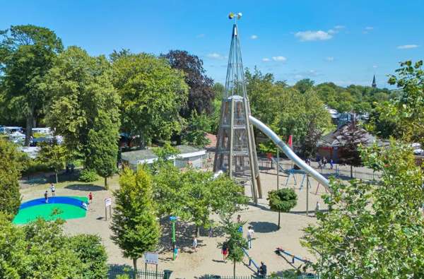In de nostalgische speeltuin vind je naast alle speeltoestellen ook de superhoge Glijbaantoren. De glijbaan heeft drie glijbanen; de ene hoger dan de andere. Klim veilig me de trap naar boven en kies zelf vanaf welke glijbaan jij naar beneden gaat!