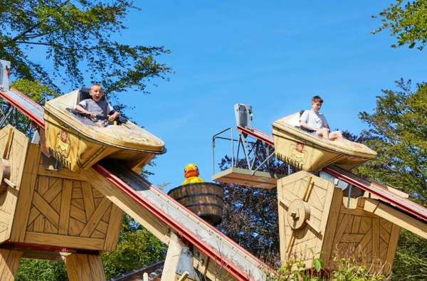 In de Katapults spring je in het water zoals Rick de Kikker! In deze attractie neem je plaats in een bootje en word je achteruit omhoog getrokken. Houd je goed vast! Je glijdt naar beneden van de schans en maakt een flinke plons. Het bootje brengt je vanzelf terug op het droge.