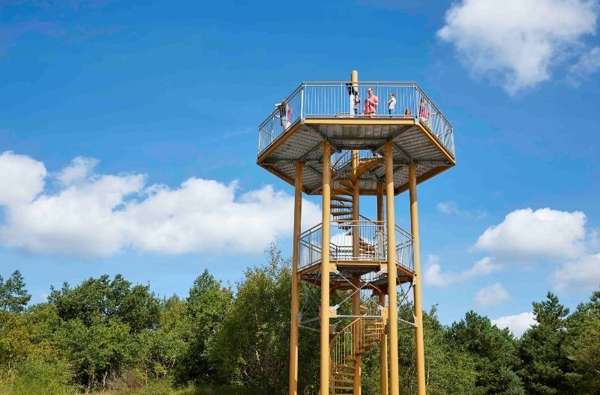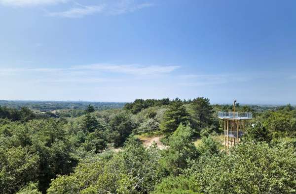 Om de uitkijktoren te bereiken moet je een aardige klim maken. De toren staat bovenop de heuvel waarvandaan de Rodelbaan naar beneden loopt. Dit is zelfs de hoogste duin van Zuid-Holland! Eenmaal boven word je beloond met een geweldig uitzicht. Je kijkt uit over het groen van Wassenaar en Duinrell: bomen, bomen en nog eens bomen. Maar je ziet ook het strand en de zee. Welke steden kun jij in de verte herkennen?