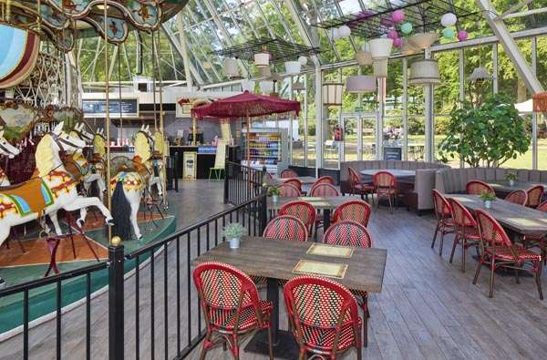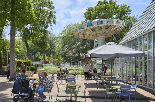 Midden in het restaurant vind je een ronddraaiend stukje geschiedenis: namelijk onze historische draaimolen uit 1864. Vroeger werd hij in beweging gezet door echte paarden. Gelukkig hebben we nu elektriciteit! Neem plaats op één van de paarden of stap samen in een wagentje.