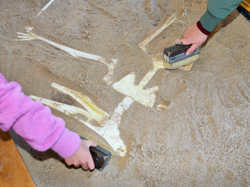 Naast alle levensgrote dinosaurussen is er een leerzame speurtocht waarmee je alles over de dino’s leert en ga je zelf op zoek naar fossielen in de opgravingen met zand.