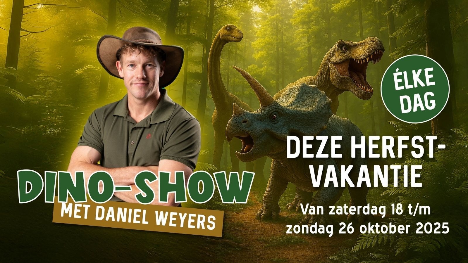 *In de herfstvakantie van zaterdag 18 oktober tot en met zondag 26 oktober 2025 is er élke dag een Dino-show met Daniel Weyers in het Zomertheater. Per dag zijn er 4 showtijden die je kunt bezoeken.