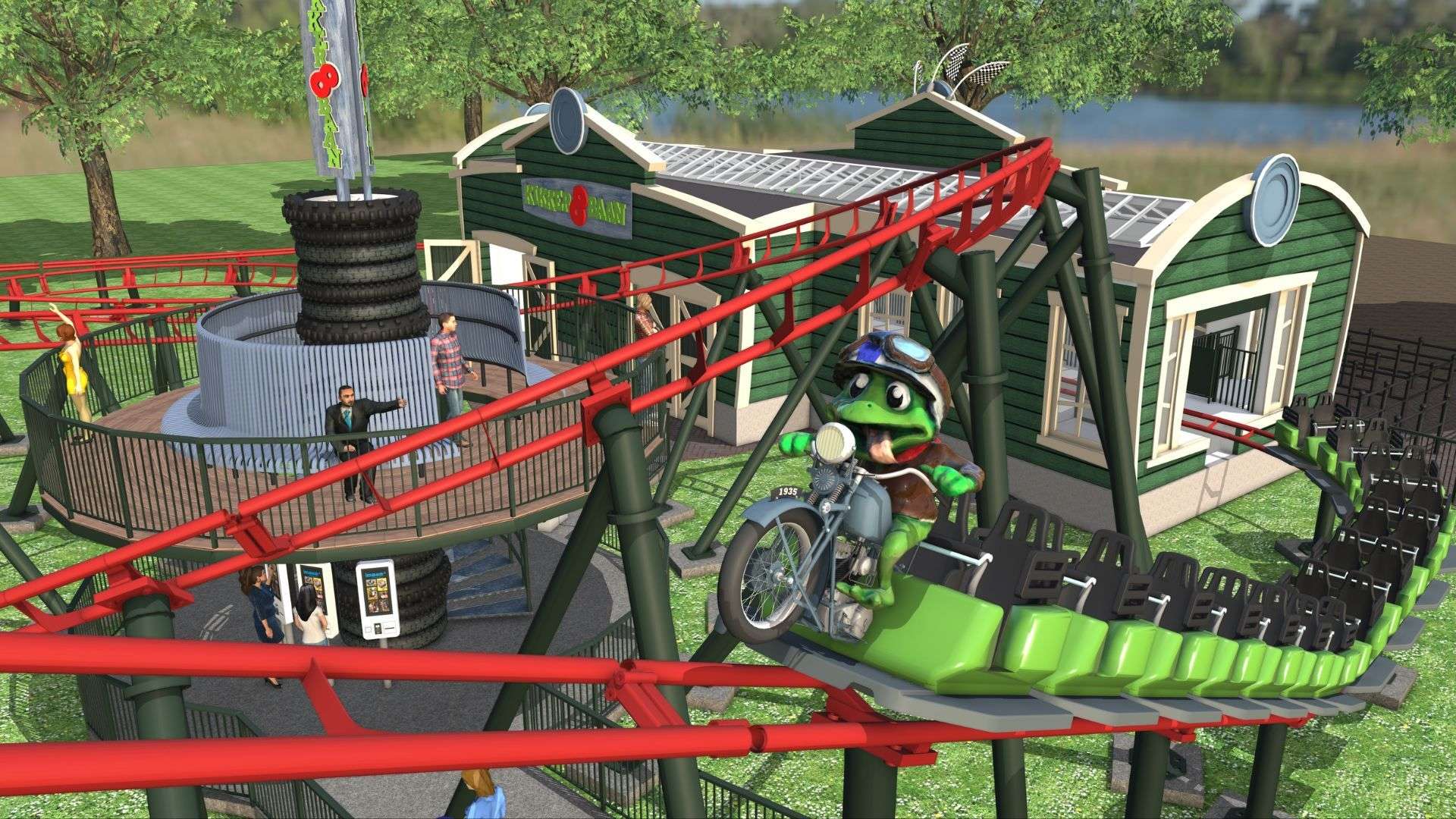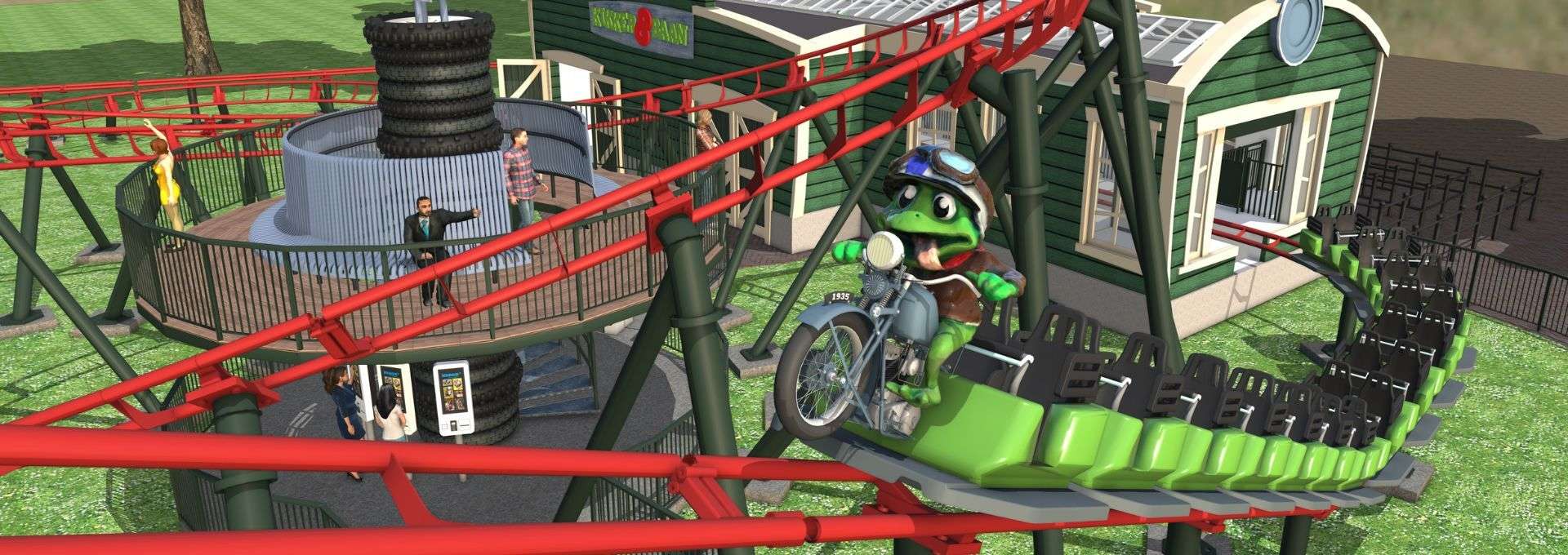 Bij de ontwikkeling van het nieuwe thema is zorgvuldig gekeken naar de herkenbare elementen van de oude Kikkerachtbaan. De iconische dubbelde “acht”-vorm blijft behouden. De complete baan wordt echter volledig vernieuwd, gespiegeld en voorzien van een nieuwe kleur: rood. In het midden van de attractie komt een verhoogd platform met uitkijkpunt, zodat familie en vrienden het eerste ritje van hun kinderen, kleinkinderen of vrienden kunnen meebeleven en onderdeel worden van het avontuur. En natuurlijk keert Rick de Kikker terug vooraan op het achtbaankarretje zittend op zijn eigen motor, klaar om samen met alle bezoekers over de baan te racen.