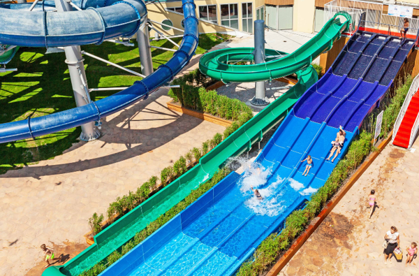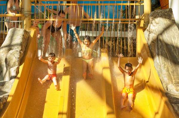 Zo is er de bekende Cycloon: een 15 meter hoge toren waar je razendsnel naar beneden glijdt en via een grote trechter in het water belandt. Doe je het liever rustig aan? Laat je dan in een band meevoeren over het water in de Lazy River. Voor kinderen onder de 120 cm is er een overdekt en verwarmd gedeelte waar zij veilig kunnen spetteren.