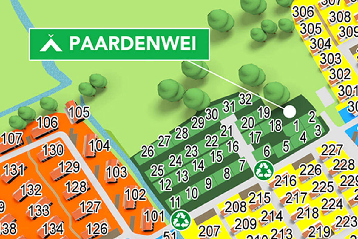 Ver van alle attracties en helemaal achter in ons vakantiepark ligt de Paardenwei, verscholen tussen de Duingalows. Het veld is overzichtelijk met weinig bomen en de struiken en heggen scheiden de subvelden van elkaar. Doordat er niet veel bomen staan, is het veld ook vaak zonnig. Er zijn geen oevers of beekjes in de buurt, wat fijn is als je met kleine kinderen gaat kamperen. Het bruisende hart, Duinrell Plaza, ligt op nog geen 5 minuten lopen. Hier vind je ons La Place Restaurant Duinrell Plaza, de Duinrell Superstore, Duinrell Pub en Take Away.