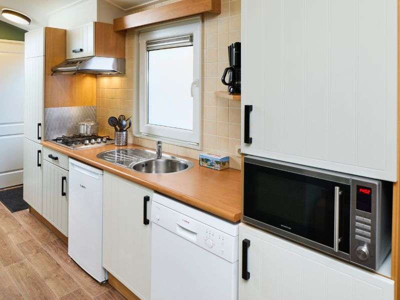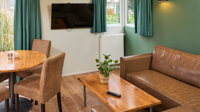 Afmetingen: 10,6m x 3,5m exclusief veranda. Tuinmeubilair en ligbedden zijn inbegrepen bij je boeking. De Duingalow ligt op max. 10 minuten wandelen van de attracties.