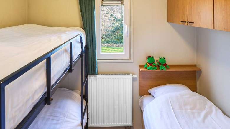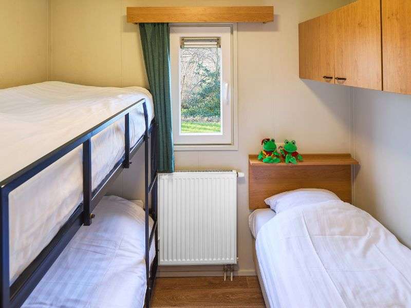 De Duingalow biedt plaats aan 5 personen en heeft twee compacte slaapkamers. Eén met een tweepersoons boxspringbed, en één met stapelbed voor kinderen en eenpersoonsbed. Een eventueel kinderbedje kan in de woonkamer worden bijgeplaatst.