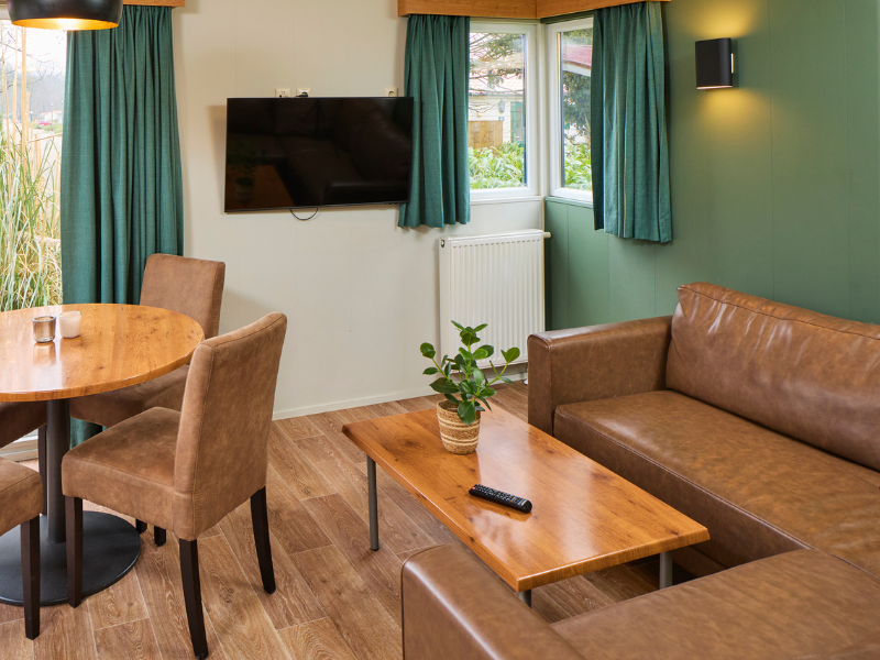 Deze 5-persoons Comfort Duingalow bevindt zich in een rustige omgeving aan de rand van het park. Aansluitend deze charmante vakantiewoning is een gezellig vlonderterras met luxe tuinmeubilair en ligbedden om samen te genieten van de buitenlucht.