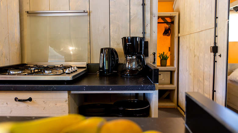 De Family Lodge voor 12 personen is volledig ingericht en heeft twee badkamers, een ruime keuken met onder andere een koelkast, koffiezetapparaat en combi-magnetron, een sfeerhaard en twee gezellige zithoeken waar je met z’n allen comfortabel kunt zitten.