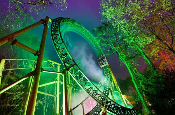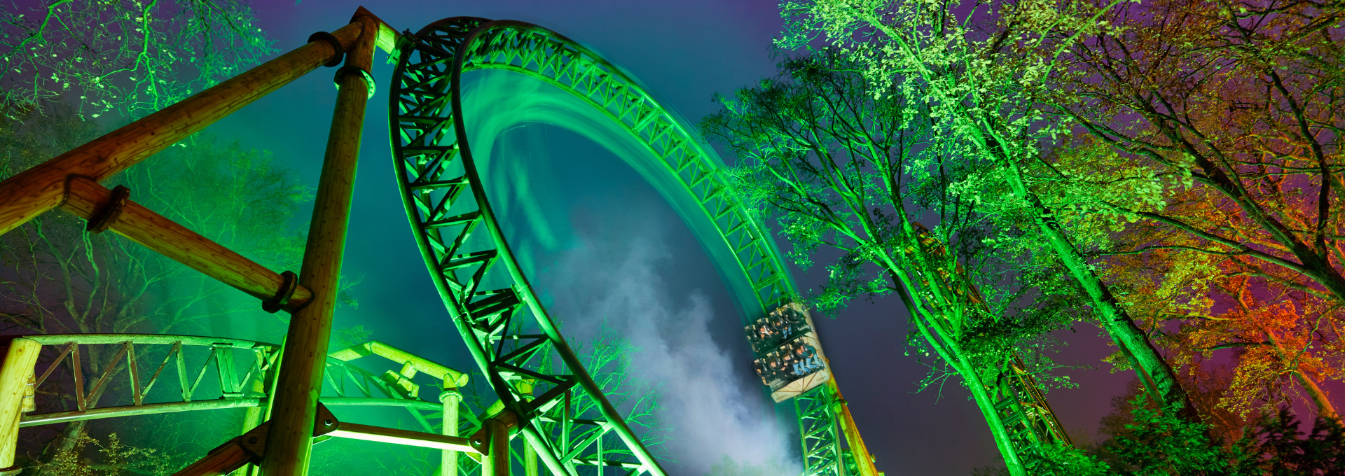 De sfeervolle Rides by Lights op Duinrell zijn een beleving voor iedereen. Je kunt over de kop gaan in de Falcon, een avondvlucht maken in Wild Wings en je laten meevoeren in de Dragonfly.